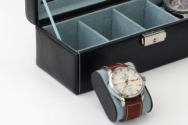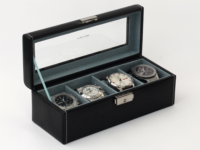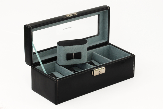 Etui skórzane na 4 zegarków - Bond Coollection. Bardzo kompaktowe ( nie zabiera dużo miejsca), odpowiednio usztywnione stanowi idealne miejsce do przechowywania zegarków. Starannie skomponowane wnętrze, pomimo niewielkich gabarytów, pomieści 4 zegarków, również rozmiaru XXL, ponadto:
