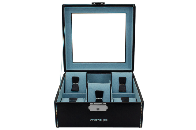 Bardzo kompaktowe ( nie zabiera dużo miejsca), odpowiednio usztywnione stanowi idealne miejsce do przechowywania zegarków. Starannie skomponowane wnętrze, pomimo niewielkich gabarytów, pomieści 6 zegarków, również rozmiaru XXL: Ponadto:
