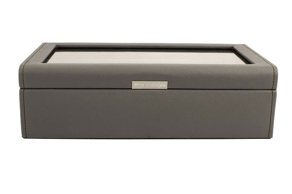Pudełko ( etui) skórzane na 10 zegarków z dużym przeszkleniem- skóra ekologiczna z przeplotem krzyżowym. Cross Grain Collection. Taupe. Produkcja niemiecka- Friedrich/23. Perfekcyjna jakość wykonania. Duże przeszklenie zapewni Tobie piękną prezentację kolekcji. |