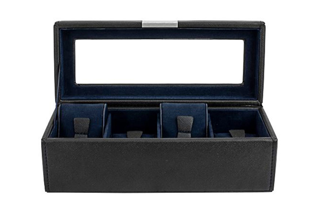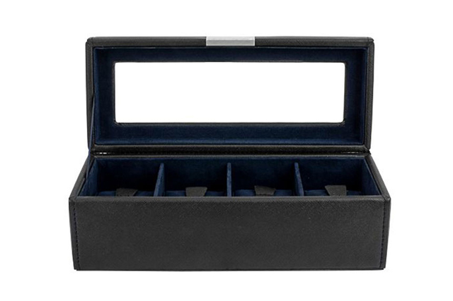Bardzo kompaktowe ( nie zabiera dużo miejsca), odpowiednio usztywnione stanowi idealne miejsce do przechowywania zegarków. Starannie skomponowane wnętrze, pomimo niewielkich gabarytów, pomieści 4 zegarki, również rozmiaru XXL: Ponadto: