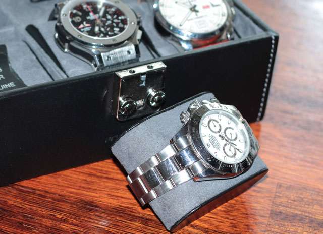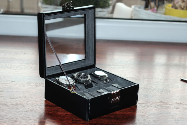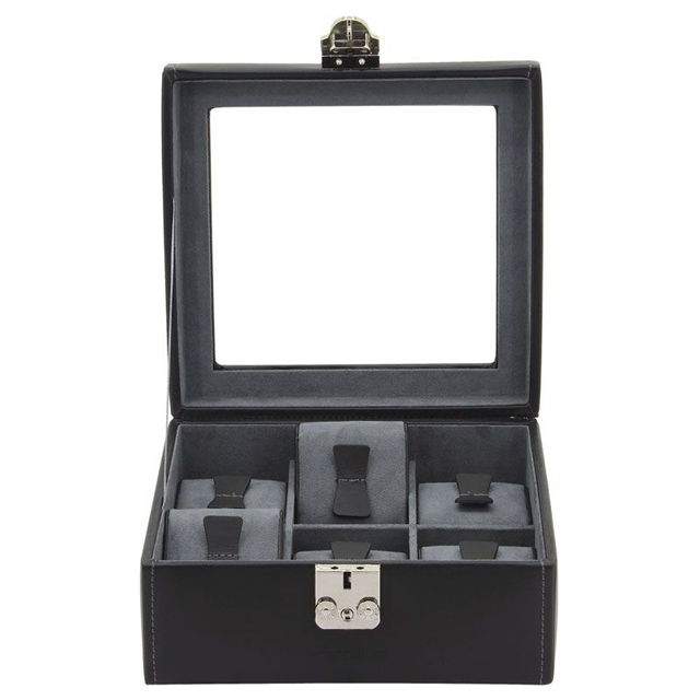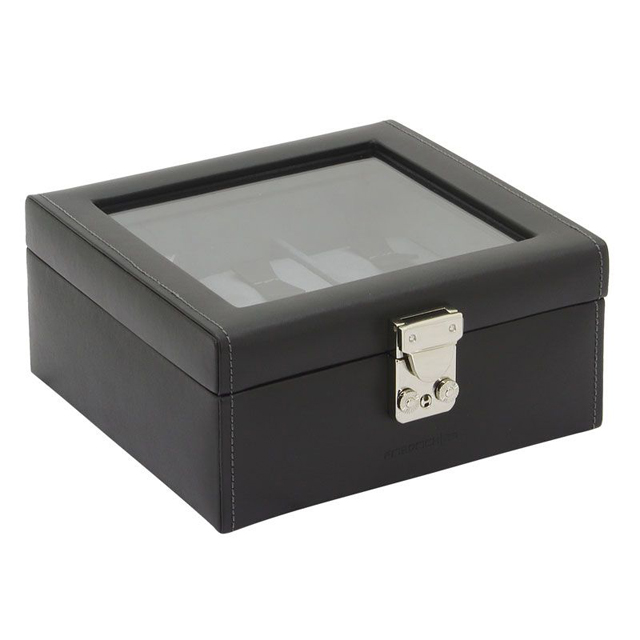 Etui skórzane na 6 zegarków z duzym przeszkleniem. Produkcja niemiecka. Skóra naturalna - cielęca. Czarne. Perfekcyjna jakość wykonania. 1 rok gwarancji ! Niewielkie, trwałe, super bezpieczne oraz wygodne i miłe w użytkowaniu. |
